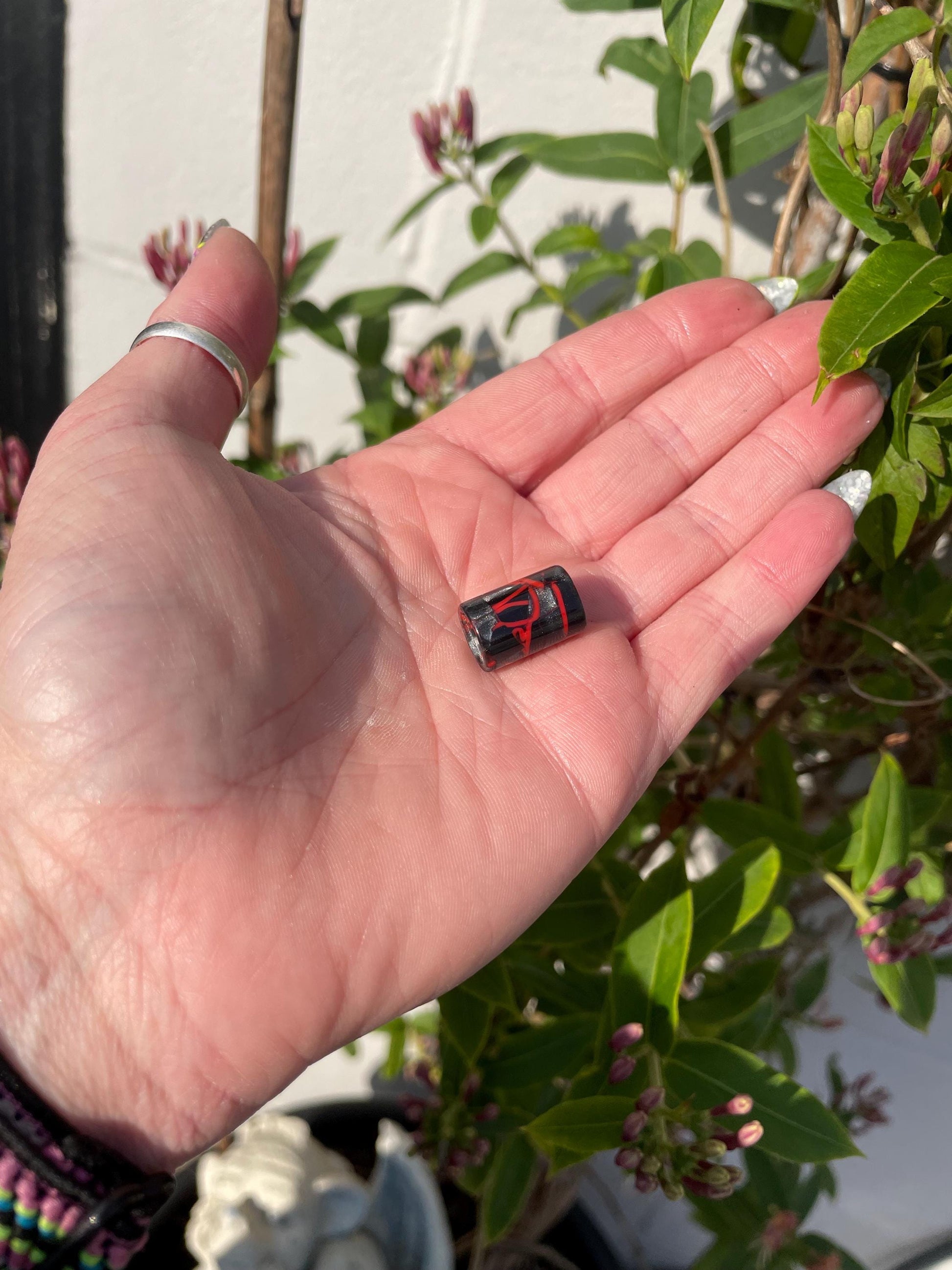 Part of the Micro Bead collection, Kisses is full of well, kisses! Shimmering black with red detail & a flash pearl & only available in 6mm hole sizes and stands just over 1cm tall